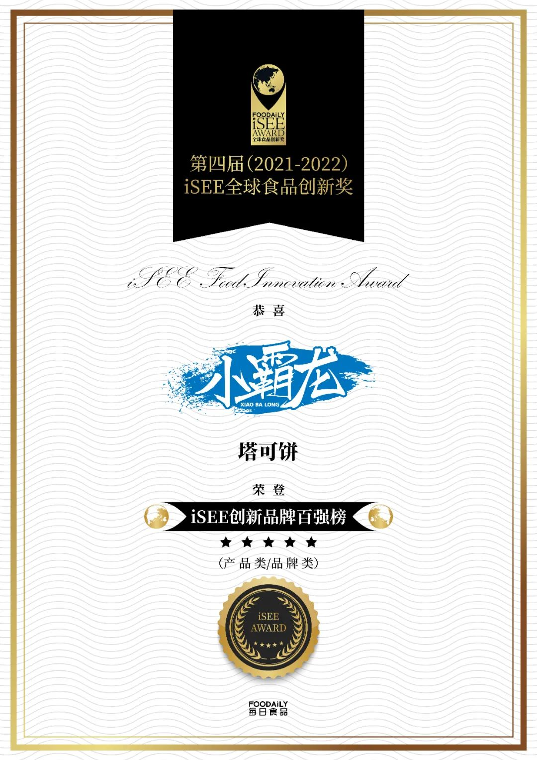 本屆iSEE創新獎評選共有458家企業/品牌提報,涵蓋食品類、乳品類、飲料類3大類別(共60+細分品類),圍繞產品創新力、消費洞察力、用戶體驗感、科技領導力、商業表現力、消費者價值6大評審維度,經過評審委員會的專業審核,層層嚴選,最終誕生百強名單。小霸龍正是從全球食品類品牌中脫穎而出,成功進入iSEE創新品牌百強榜。