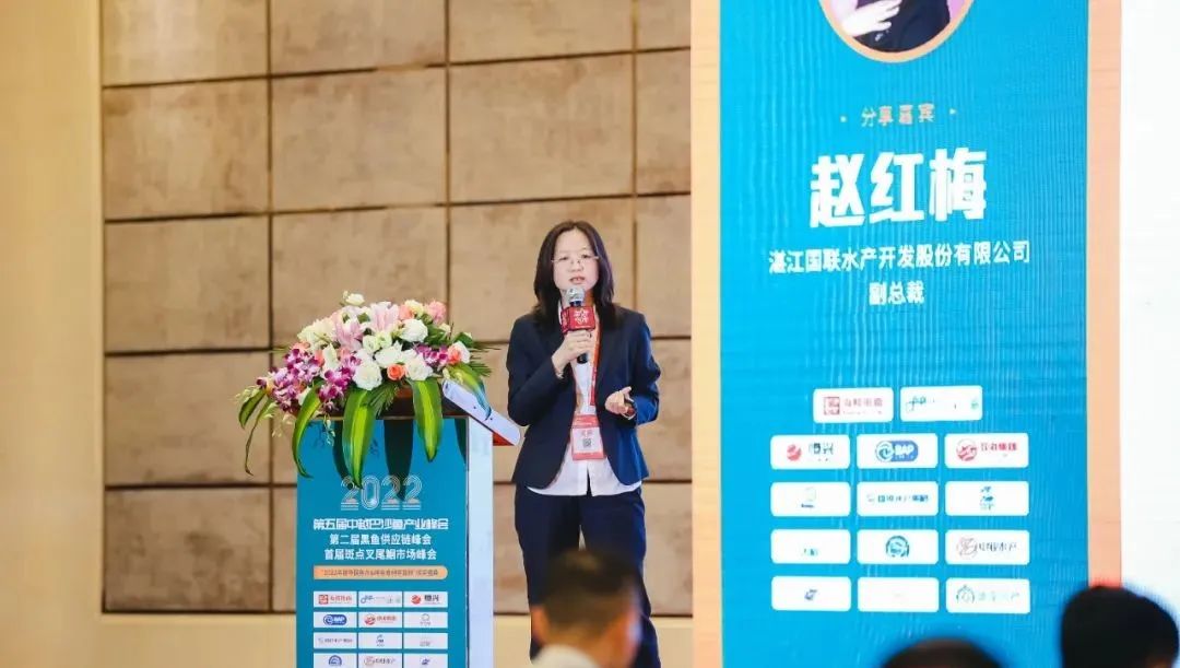首日下午,2022第五屆中越巴沙魚產業發展高峰論壇同步舉行。國聯水產集團副總裁趙紅梅代表我司受邀出席,為魚片及烤魚等水產預制菜爆品打造及市場品牌創建作主題分享。趙紅梅副總裁表示,在預制菜的萬億風口下,魚類預制菜大有可為。