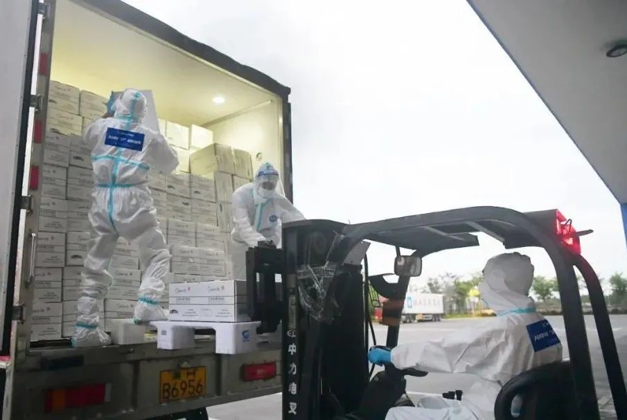 近日,上海疫情形勢嚴峻,牽動著全國人民的心?!肮餐販瑧饎僖咔椤?!4月7日早上8點左右,在多方協調之下,國聯水產位于上海的倉庫大門打開。在工作人員和當地志愿者的幫助下,調集籌備好的13噸預制菜開始陸續搬上大卡車,將運往上海的各個相關接收點。