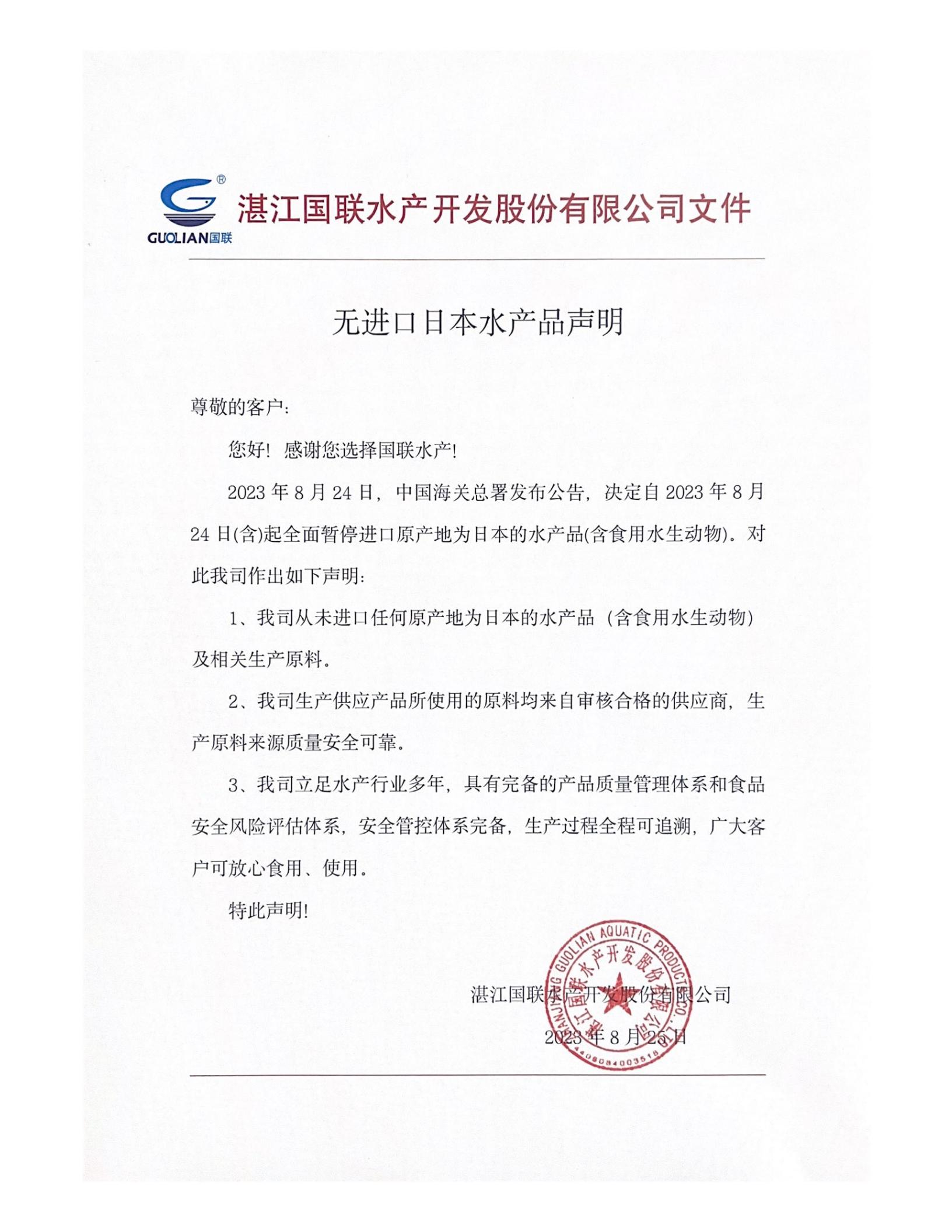 無進口日本水產(chǎn)品聲明.pdf